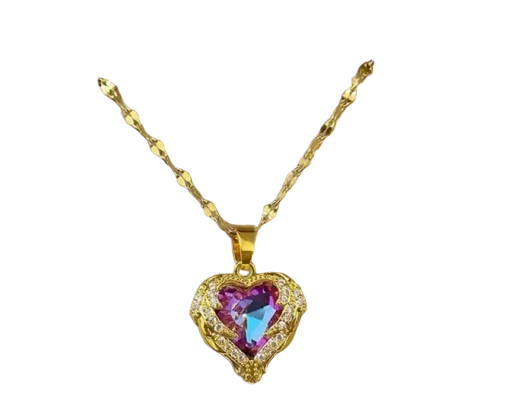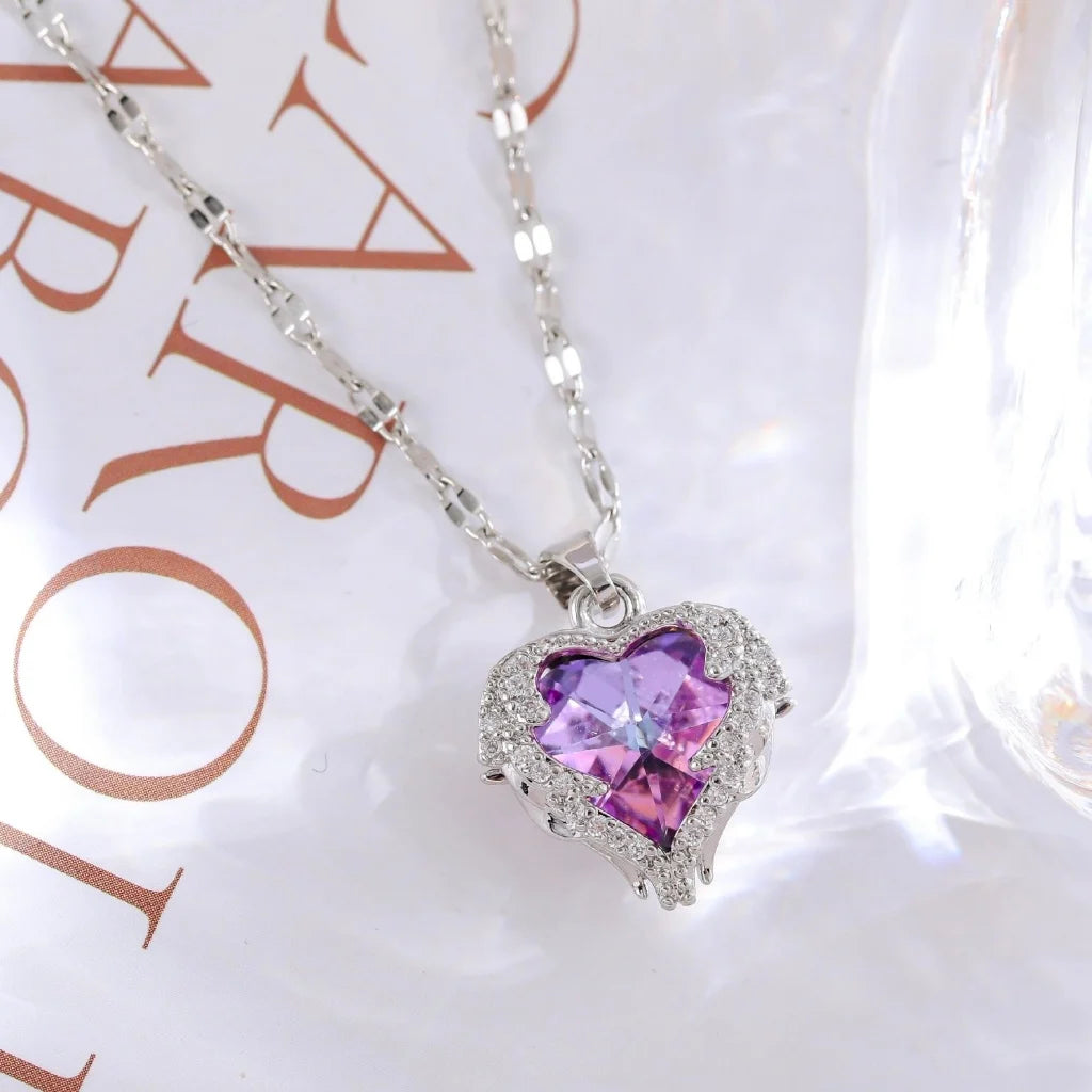 Colar Coração do Oceano com Cristal - Aço Inoxidável Antialérgico - Luxo Elegante Feminino