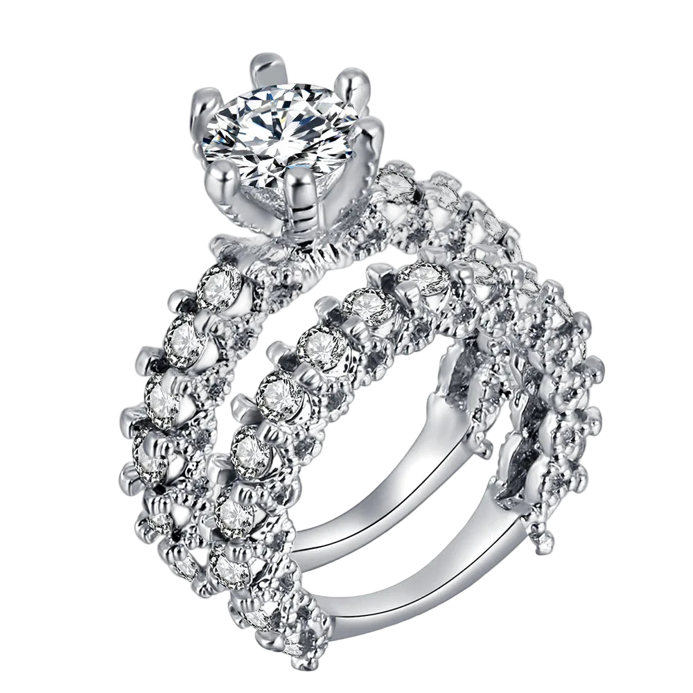 Anel Elegante com Zircônias Prateado - Noivado e Casamento - Cristais Cintilantes Feminino