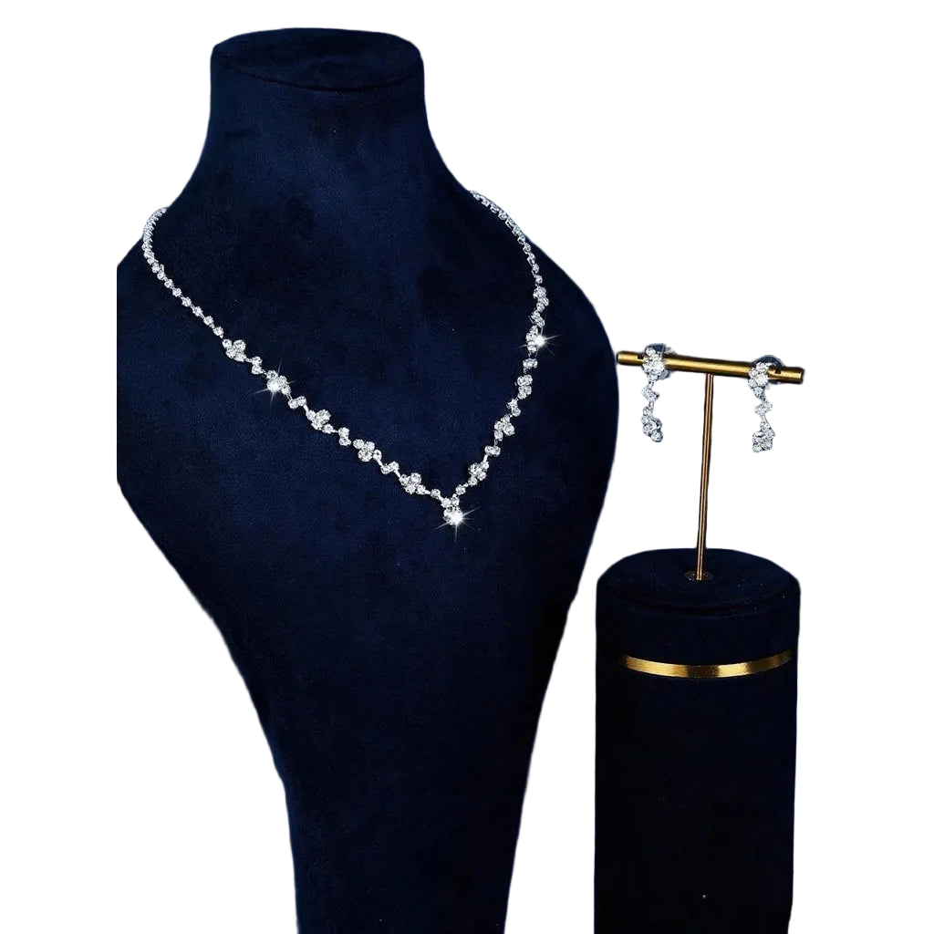 Destaque-se com este conjunto exclusivo de joias com design irregular moderno que inclui colar, brincos, pulseira e anel perfeitamente coordenados. Ideal para casamentos, festas e ocasiões especiais onde você quer um visual completo e sofisticado.